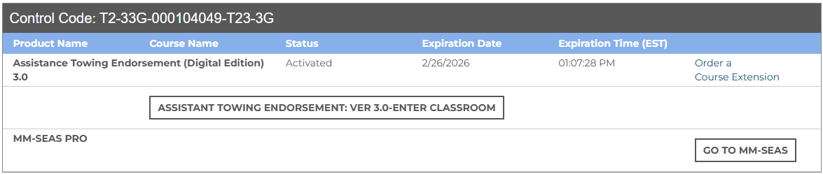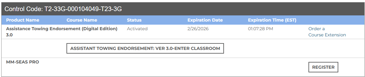- Once activated, a second line item will appear labeled MM-SEAS Expert Access with a REGISTER button